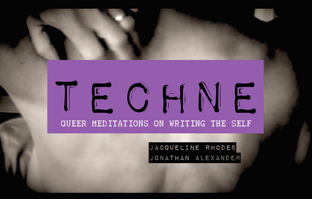 Winner, 2016 CCCC Lavender Rhetorics Book Award for Excellence in Queer Scholarship. In this project, we explore the multiple layerings of text, image, and technology as sites from which to perform/write/read the self. Specifically, this born-digital web-based project explores with its viewers the simultaneous and often contradictory interplay between digital and traditional writing technologies and the author/ed self. In this project, then, we theorize--and enact--how composing practices arise out of the complex interplay amongst discursive formations, embodiment, and mediating technologies. All are vectors through which we are simultaneously called to orient ourselves to dominant forms of knowing and through which we can intervene in such orientation. At any point in composing, we play with the possibility of critique, of writing ourselves differently. And indeed, such play is performative and epistemological. We have attempted to enact in Techne our own paying-attention to the possibilities of working with and composing through new media. Our goal is to provide an exploration of the relationships amongst processes of digital mediation and subjectivation. As such, we have used reflections on our own experiences liberally, as a lived life is the workroom of processes of subjectivation.
